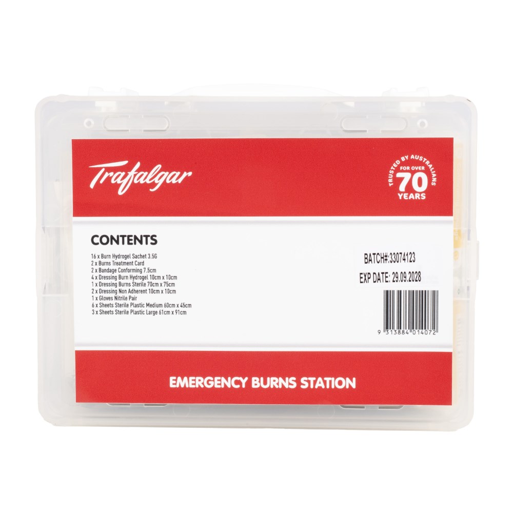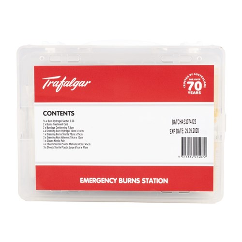 • Provides all the essential supplies needed for immediate treatment of burns in emergency situations. It includes a variety of burn dressings, hydrogels and sterile bandages.