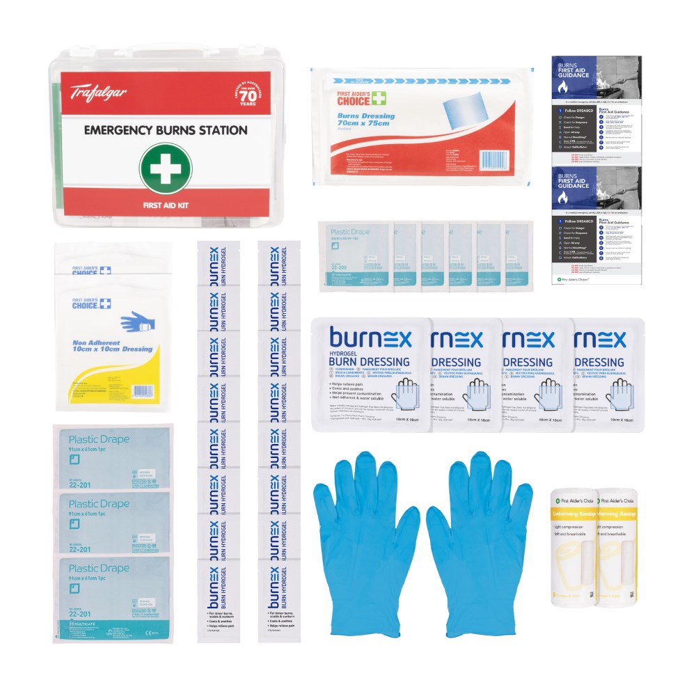 • Includes a variety of burn dressings, gels and sterile bandages.