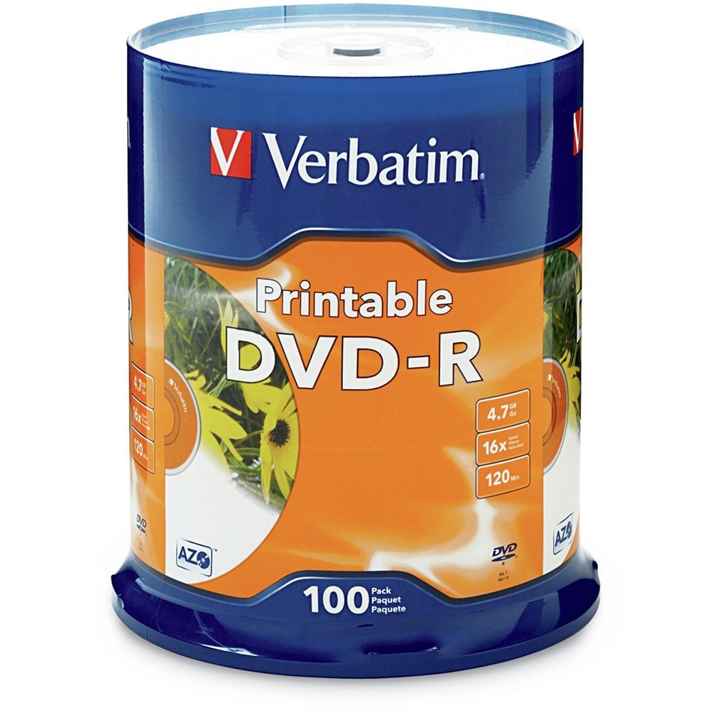 Verbatim Recordable DVD-R 120Min 4.7GB 16X Inkjet Printable Pack Of 100 White
