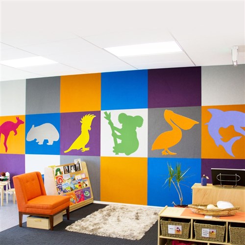 • Australian animal adhesive backed tile brings colour, fun and function while reducing noise in learning environments.