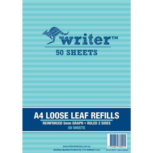 Writer Binder Refills A4 5mm Graph Reinforced Pack of 50