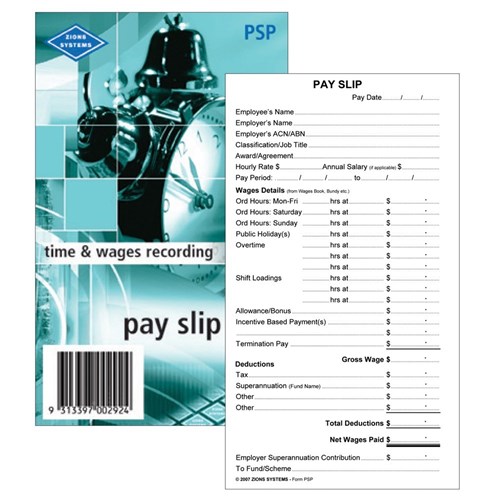 Zions Printed Pay Slip Pads 165x90mm 50 Leaf